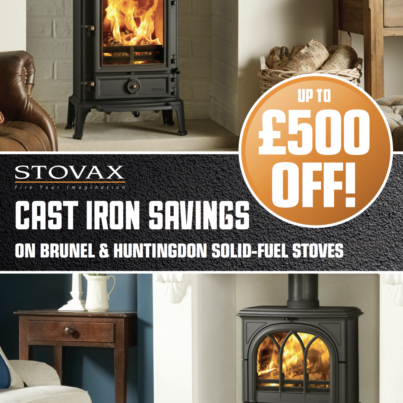 Massive savings for our customers of up to £500 off Stovax cast iron Brunel and Huntingdon stoves. The Cast Iron Savings promotion spans all stove models in the Brunel and Huntingdon ranges, including Ivory enamel models, giving you a great opportunity to increase your sales of these high quality, classic stoves.