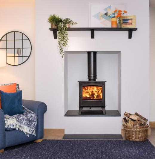 This Eco Design 2022 ready stove displays a large viewing window, through which you can see the wood burning beautifully and effortlessly.